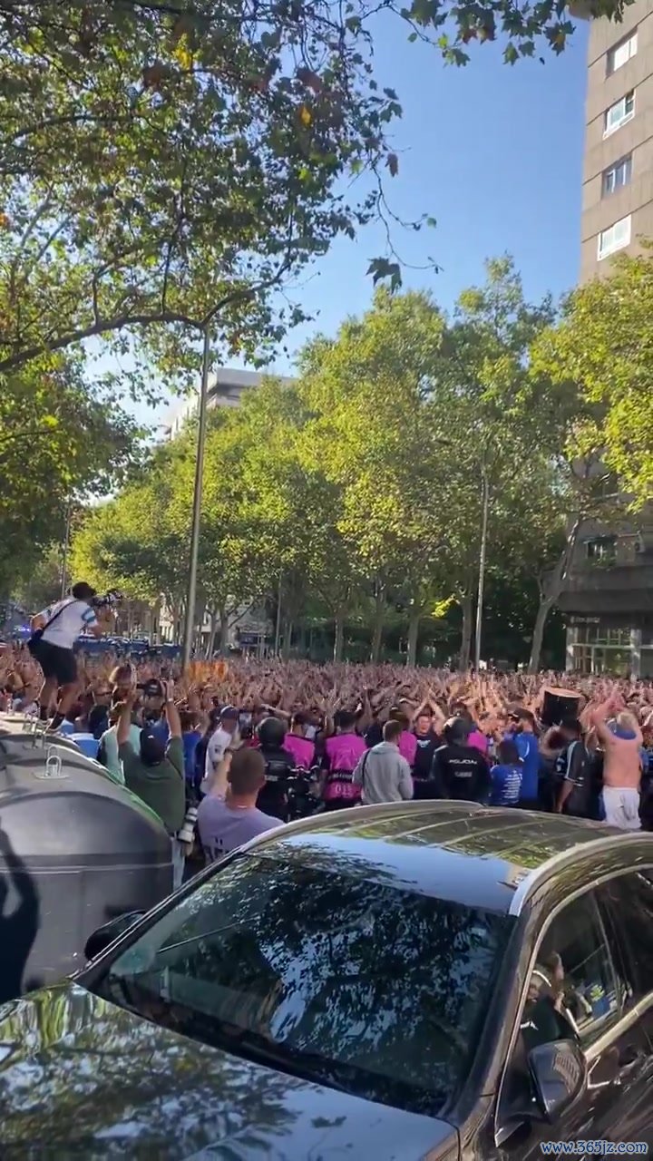 大战一触即发!4000马赛球迷齐聚马德里街头,即将前往伯纳乌
