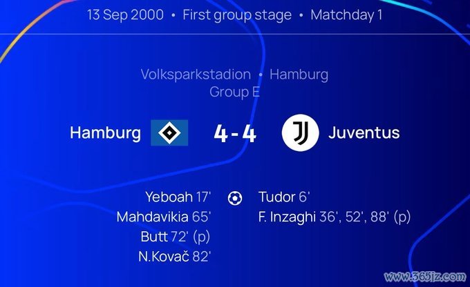 有数据统计 称,上次尤文在欧冠与对手踢出4-4的比分还要追溯到25年前, 多特蒙德2000年9月13日客场应战 对阵汉堡, 足球快讯因扎吉上演独中三元并在第88分钟打进绝平十二码球。
