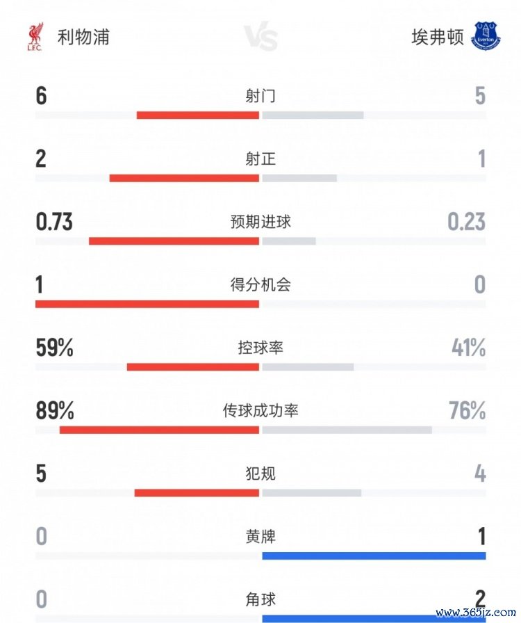 利物浦vs埃弗顿上半场数据: