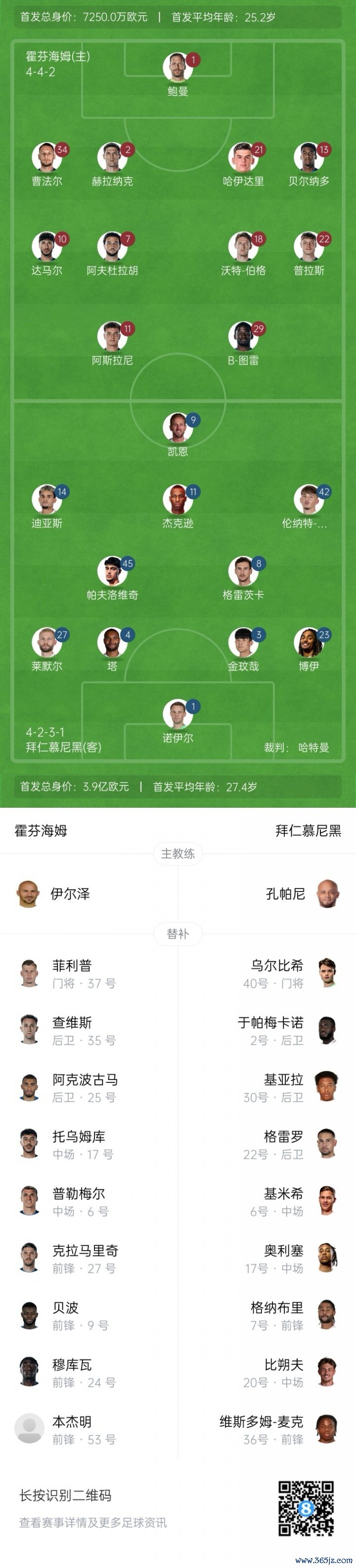 霍芬海姆后备 :37-菲利普、25-阿克波古马、35-查维斯、6-普勒梅尔、17-托乌姆库、27-克拉马里奇、9-贝波、24-莫库瓦、53-本杰明