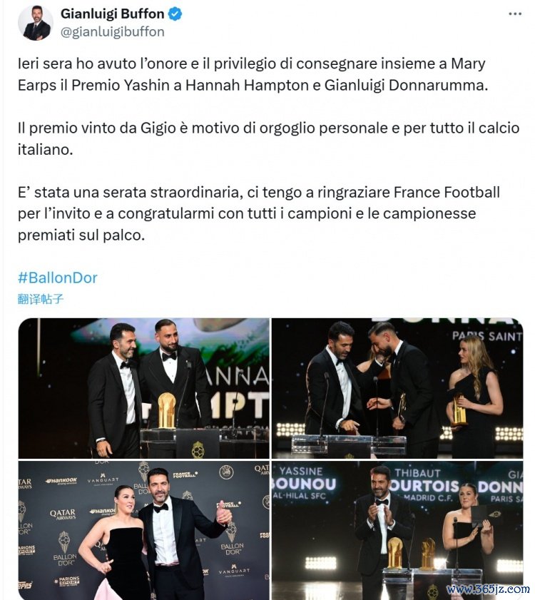布冯在社媒写道:“昨晚,篮球新闻我很荣幸与玛丽-厄普斯一同将雅辛奖颁发给汉娜-汉普顿和多纳鲁马。多纳鲁马获得的这一奖项是个人以及整个意大利古代足球 的骄傲。这是一个非凡的夜晚西甲球队, 多特蒙德足球直播我感谢法国古代足球 的邀请, 足球快讯并祝贺所有在舞台上获奖的第一名 们。”
