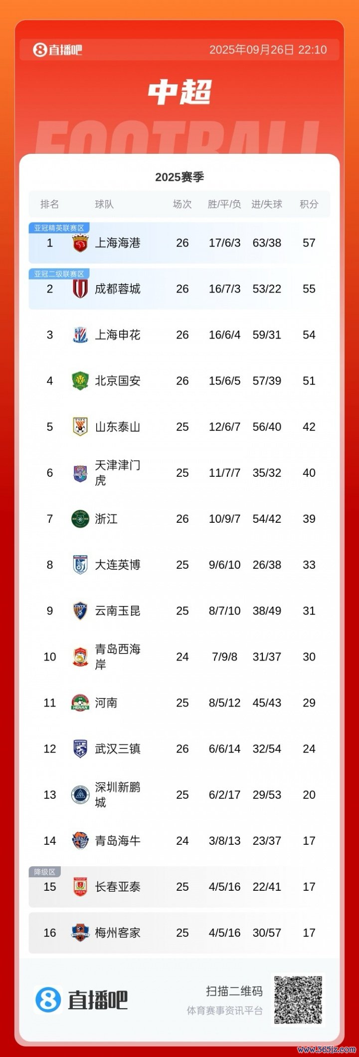 09月26日讯 海港3-2险胜三镇反超蓉城领跑中超,赛季初无人看好的蝉联第一名 第一名 出人意料地占据优势。
