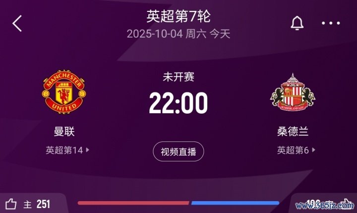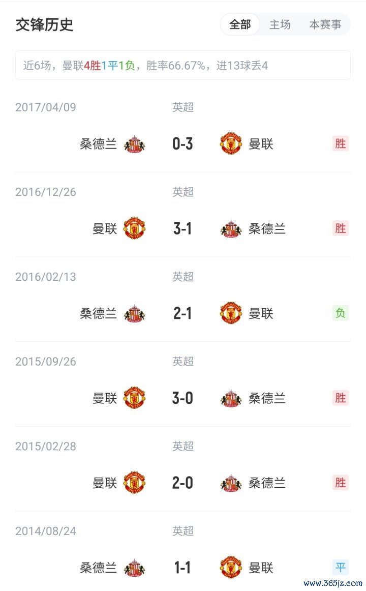 目前英超积分榜上,曼联2胜1平3负积7分,位列第14;升班马桑德兰3胜2平1负积11分,位列第6。