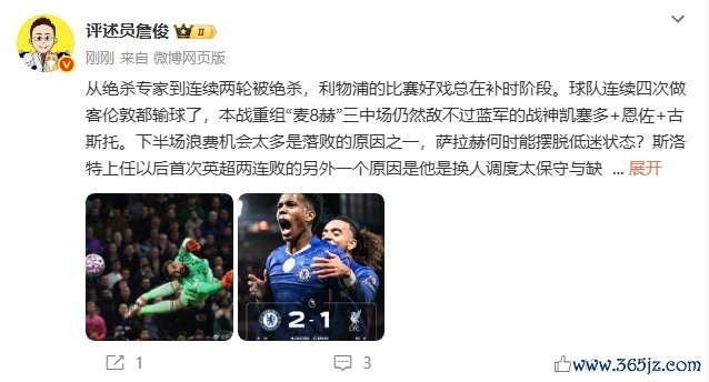 10月05日讯 切尔西本轮2-1致胜球 利物浦,送红军各赛事3连败。赛后詹俊发文。