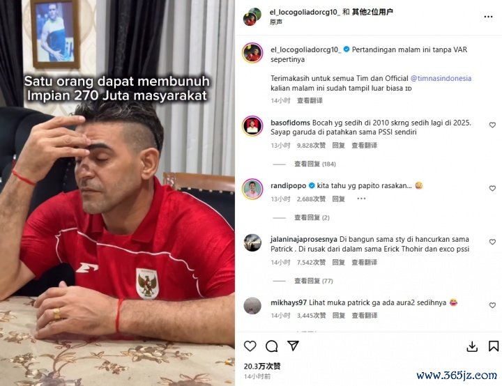 10月12日讯 世预赛亚洲区第四阶段B组第2轮,印尼0-1不敌伊拉克,已经确定无缘2026世界杯赛 。赛后前印尼国脚克里斯蒂安-冈萨雷斯在社媒发布视频,并批评了本场主裁马宁的表现。