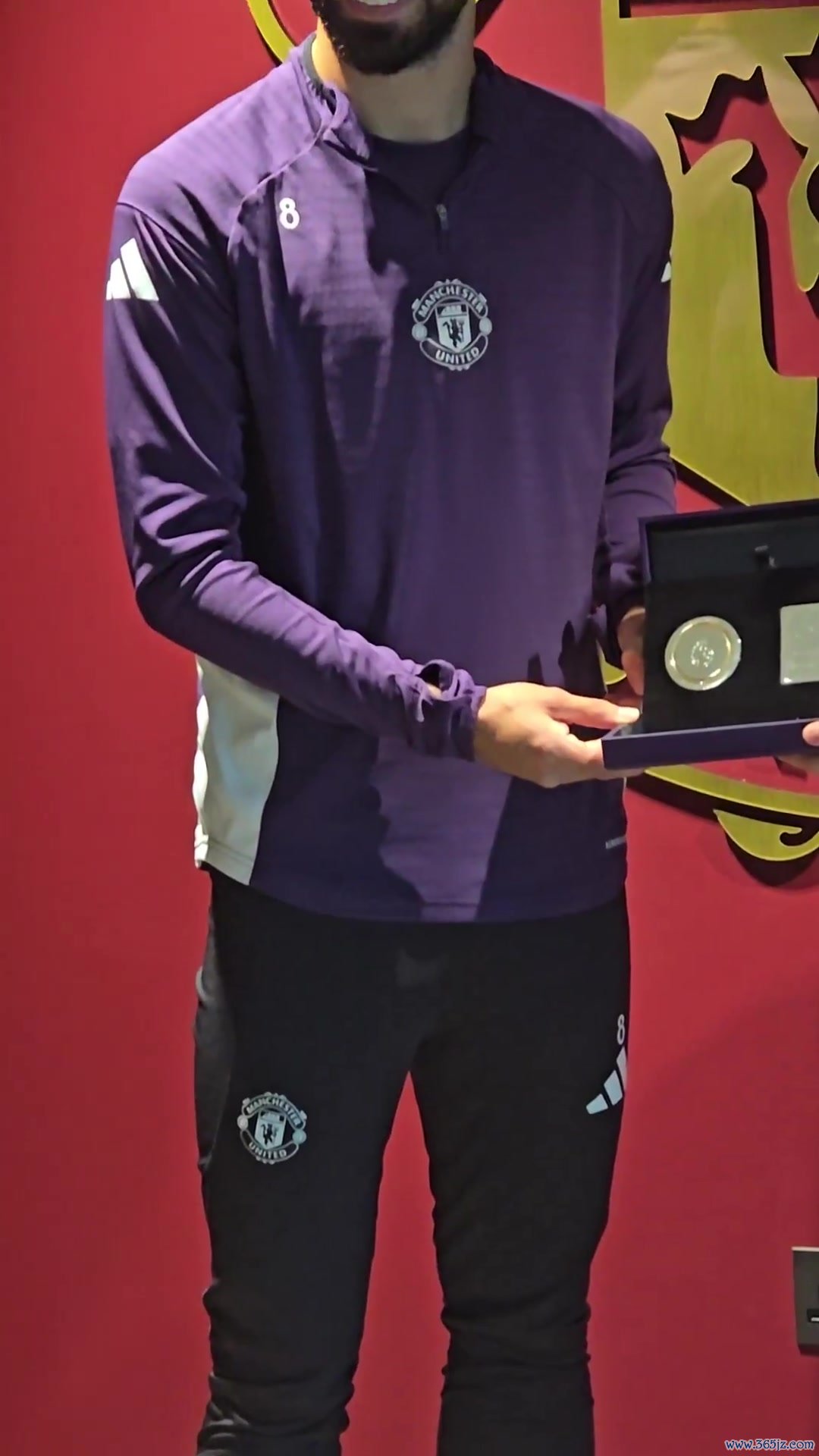 10月18日讯 B费此前当选曼联9月最佳球员,他于本周五在卡灵顿练习 基地领取了该奖项。