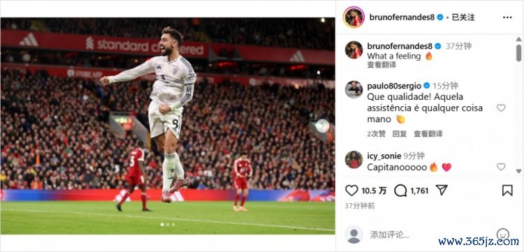 10月20日讯 本轮英超焦点战,曼联2-1客获胜 物浦。赛后, 足球快讯体育赛事曼联领队 B费更新社媒庆祝获胜 。