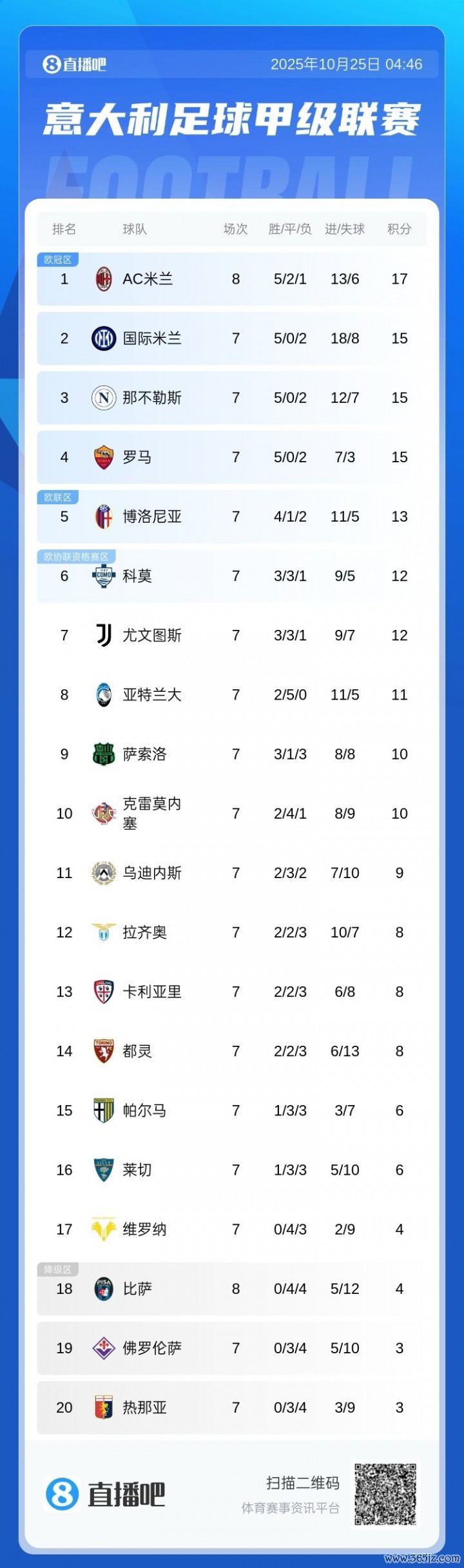 米兰此役战平垫底队,篮球新闻五大联赛很可能会将榜首位置让出。目前意甲二三四名都是15分,本轮第2的国米和第3的那不勒斯将正面交锋,若分胜负,榜首必然易主。第4的罗马则是客战萨索洛,他们也有机会登顶。