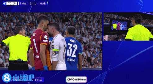 09月17日讯 皇马vs马赛第71分钟,卡瓦哈尔顶牛守门员鲁利, 多特蒙德无插件直播裁判 看VAR后出示驱逐 !