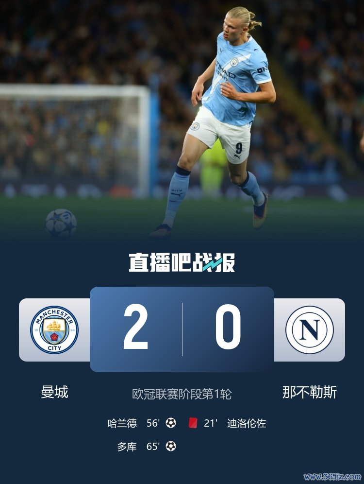 曼城2-0击败那不勒斯拿下开门红,由于迪洛伦佐染红,丁丁的归家之战在第26分钟就宣告结束。本场哈兰德和多库取得得分 。