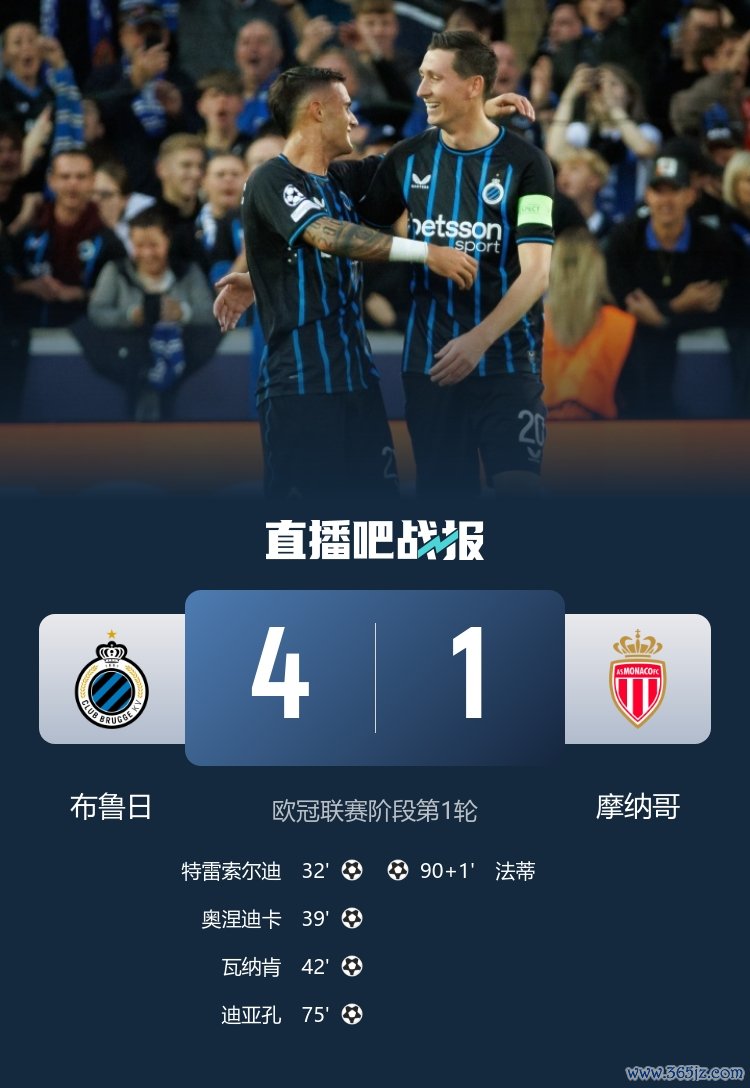 布鲁日4-1摩纳哥,这支比利时队伍在主场作战 打出亮眼表现。客队方面,法蒂攻入世界波不过对局面于事无补。