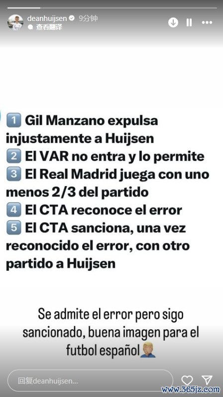 承认误判但仍维持禁赛!赫伊森社媒:可真给西班牙古代足球 长脸啊