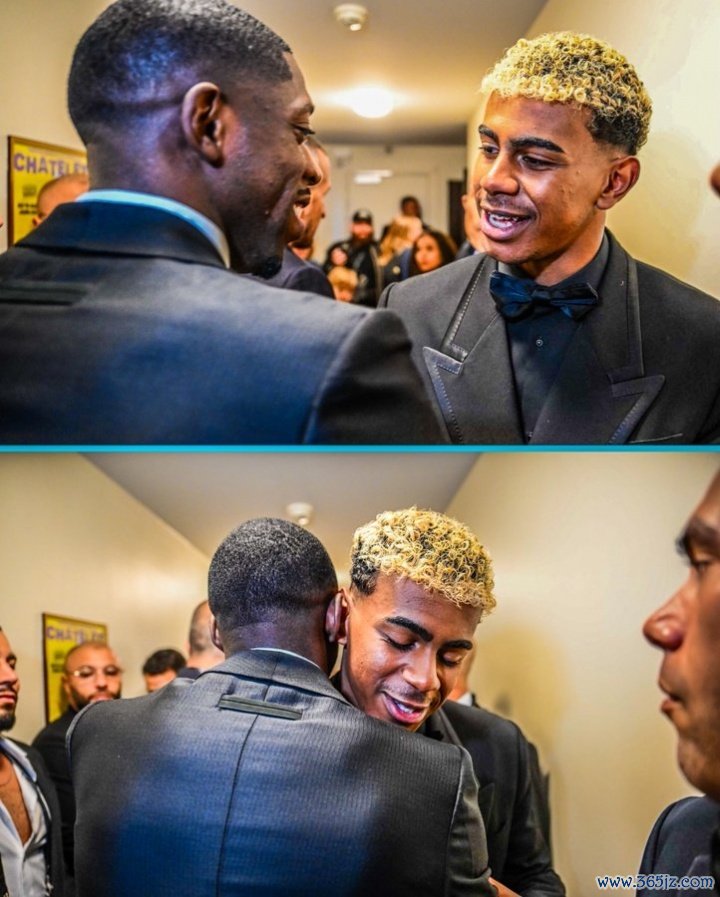 两大角逐 者碰面!登贝莱亚马尔在金球奖颁奖前相互拥抱