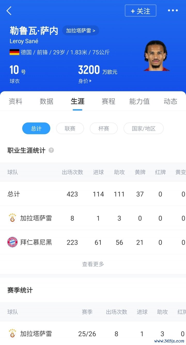 随后萨内接受加拉塔萨雷税后900万欧年薪+300万欧忠诚奖金的3年合同。本赛季至今,萨内代表加拉塔萨雷出战8场赛事 ,贡献1球3助。