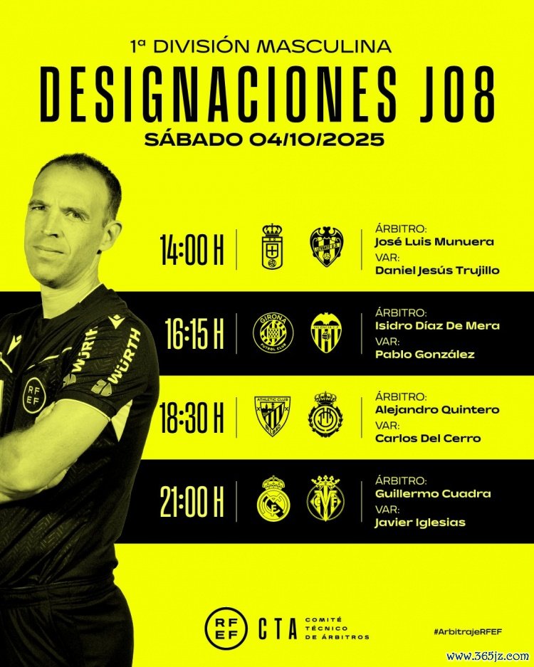10月3日讯 西甲官方公布了10月4日赛事 的裁判 安排,篮球新闻在线直播夸德拉执法皇马vs比利亚雷亚尔。