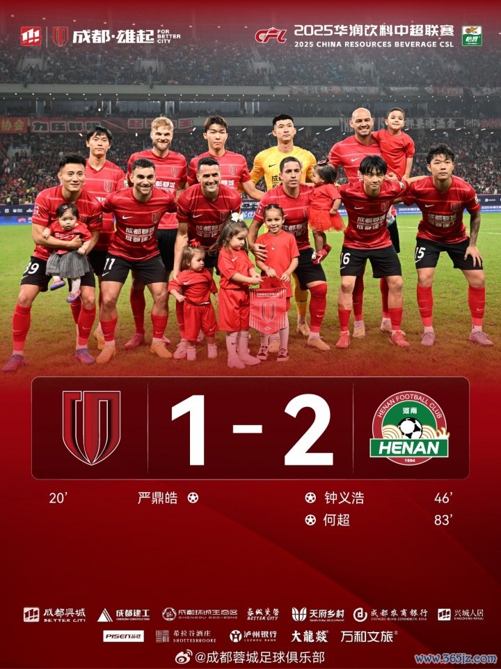 11月01日讯 中超第29轮,成都蓉城1-2不敌河南队,提前退出中超争冠。