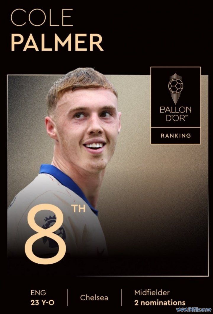 2025金球奖颁奖典礼,切尔西/英格兰球员帕尔默最终排名第8。帕尔默上赛季一共为切尔西打入15球并有14次助功 ,今夏帮助蓝军获得世俱杯第一名 。
