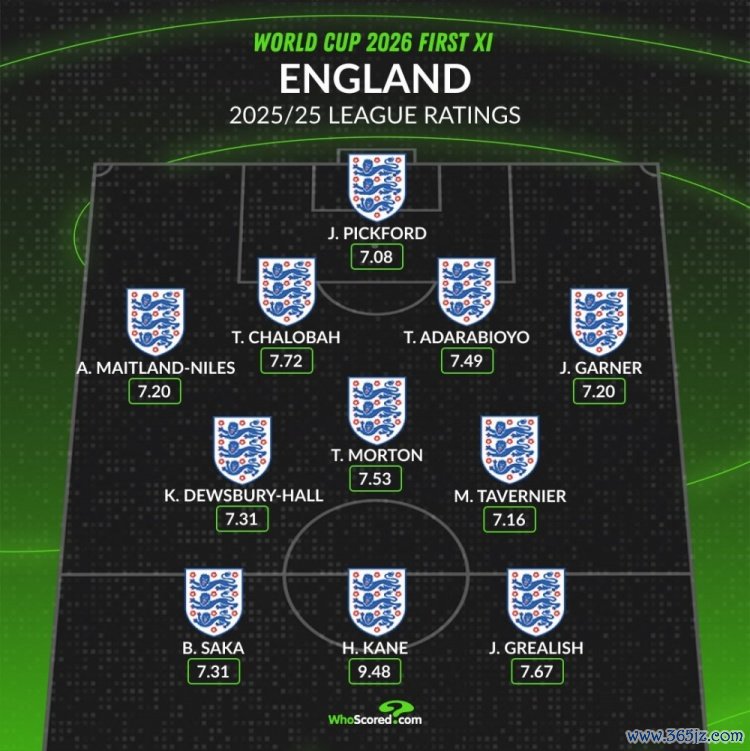 whoscored英格兰球员本赛季职业联赛 评分最佳阵:
