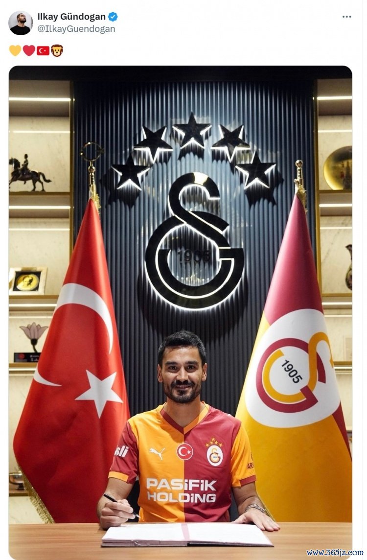 9月3日讯 曼城中场球员京多安免签加盟加拉塔萨雷,京多安更新社媒动态,晒出签约的照片。