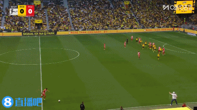 第43分钟,杨库托右路人球分过后闪出空档送出传中,吉拉西扛住防卫 球员将球打进,多特蒙德1-0柏林联合。↓