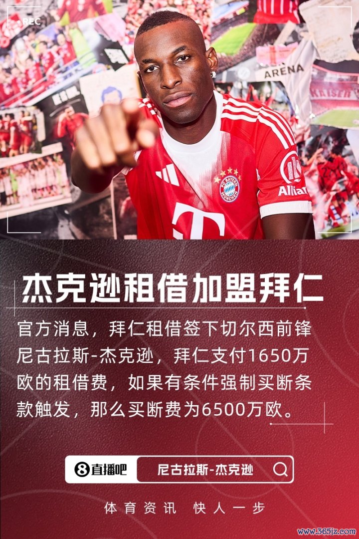 9月2日讯 官方消息,拜仁租借签下切尔西前场球员尼古拉斯-杰克逊,拜仁承担球员全部工资。