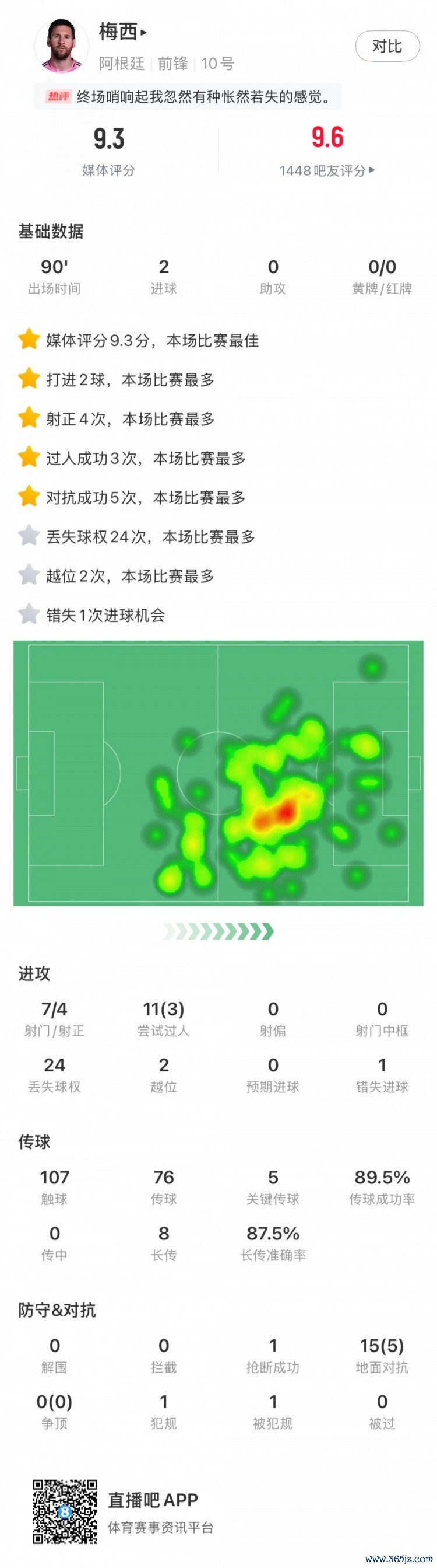 梅西全场数据如下:
