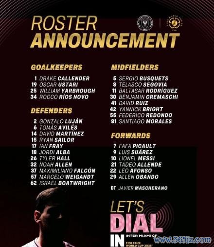迈阿密国际公布了他们参加即将举行的世俱杯的大名单,篮球新闻在线直播梅西、阿尔巴、布斯克茨、苏亚雷斯领衔。