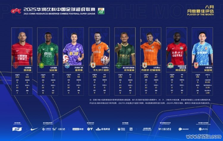 注:因第23轮大连英博海发对阵青岛西海岸赛事 延期,故八月月度评选范围为职业联赛 第19、20、21、22轮共计4轮赛事 足球直播在线直播观看免费,参选球员数据以上述4轮赛事 数据为准。