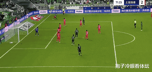 第71分钟,海港后防出现问题,李帅护球有些拖泥带水,张琳芃的解围被张玉宁一挡,直奔古代足球 门 而去,颜骏凌注意力集中,在古代足球 门 线上将球没收。