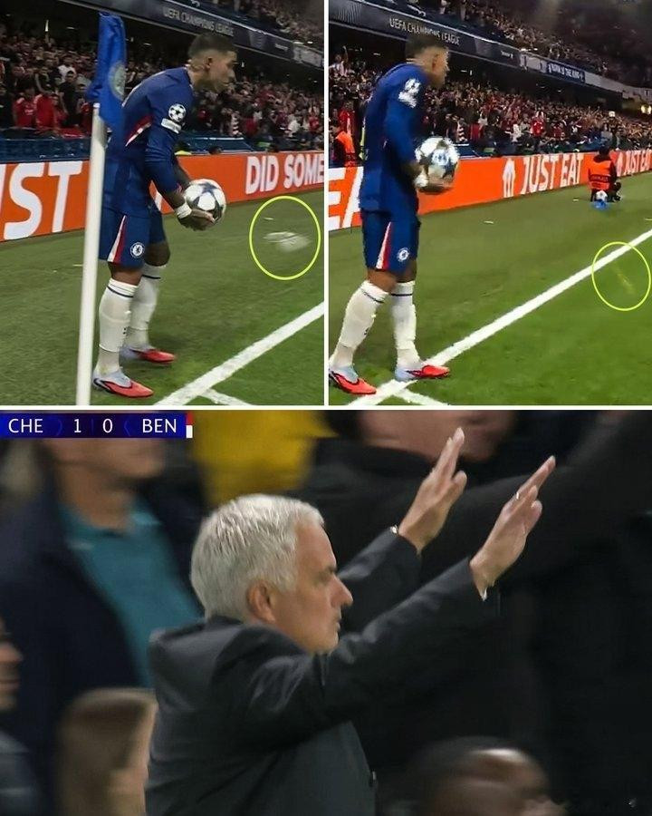 恩佐罚底线球时, 穆里尼奥走过来告诉本菲卡球迷不要再扔东西