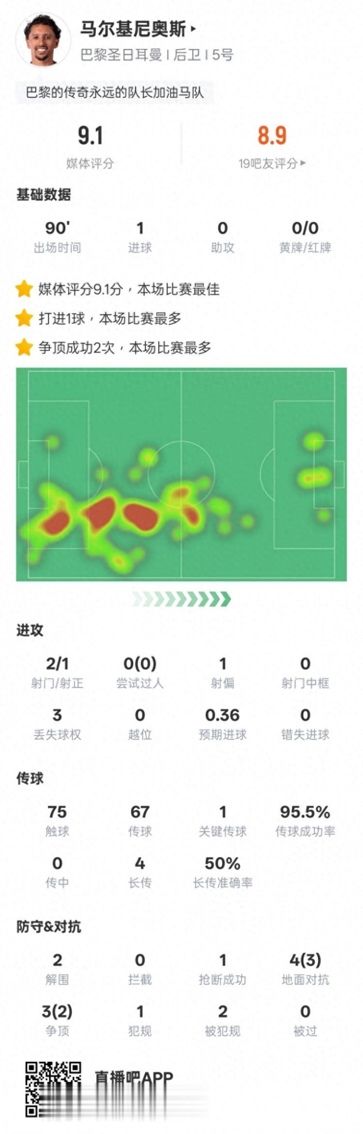直播吧9月18日讯 欧冠职业联赛 阶段第1轮,巴黎4-0亚特兰大。马尔基尼奥斯杆位出战,打进1粒得分 ,篮球新闻送出1次关键传送球 , 多特蒙德高清直播还有2次解围1次抄截 , 足球快讯传送球 成功率95.5%,评分9.1全场最高。